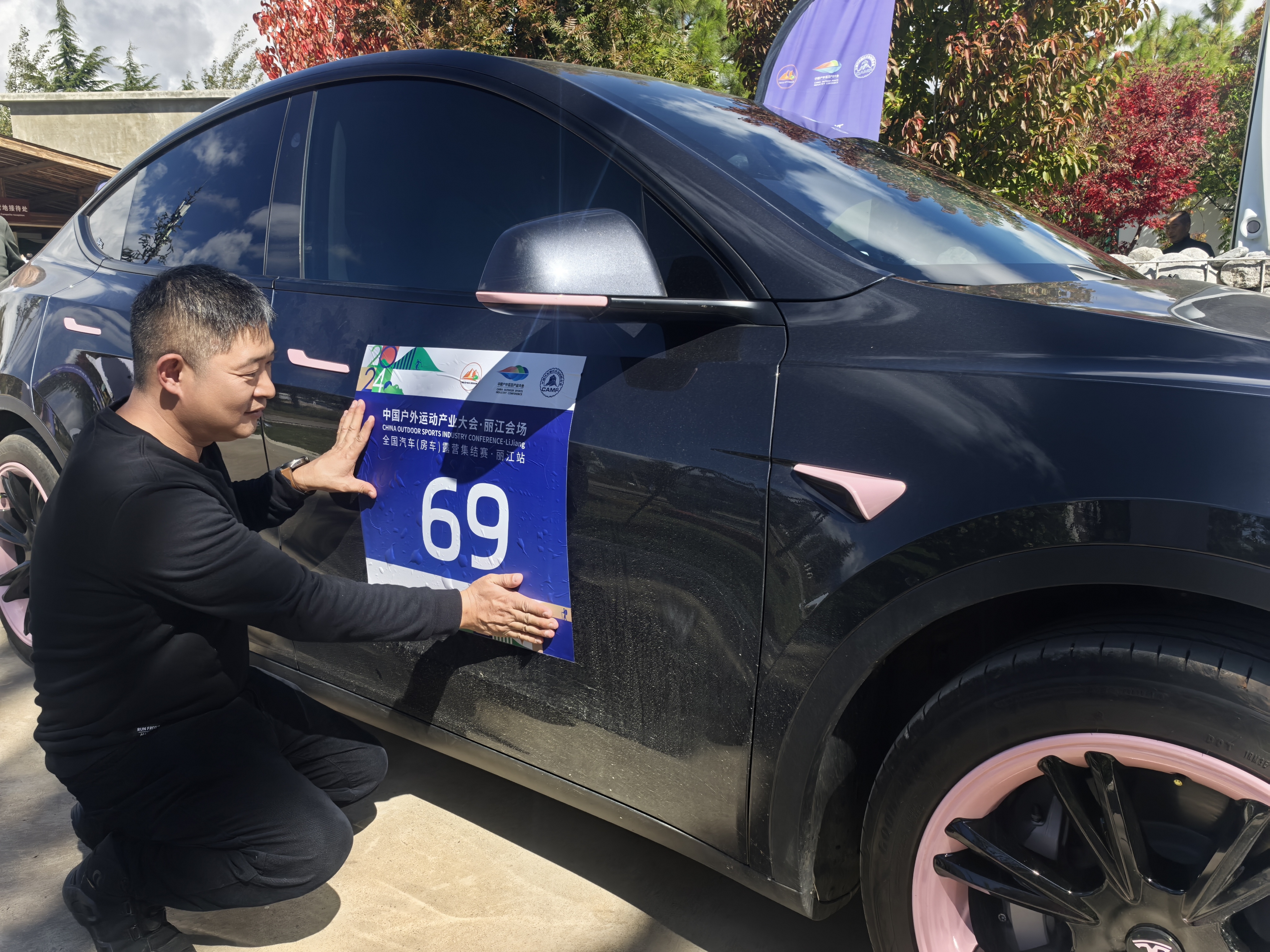 车手将参赛号牌贴于车身显眼位置。(丽江融媒记者 木雯娇 摄)