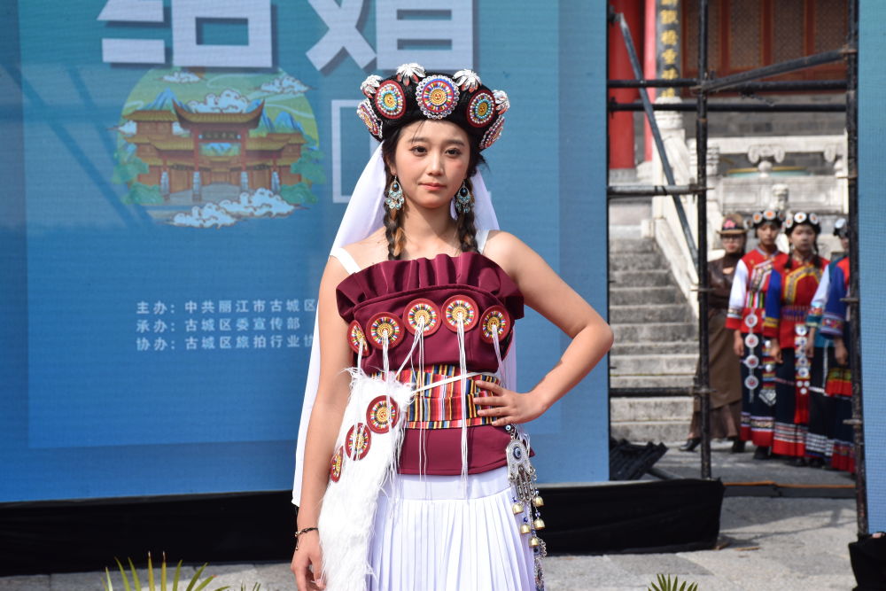 活动最后,模特们身着丽江特色的民族服装进行走秀展示。此次的民族服装秀以纳西族服饰为主,服装设计者在传统的纳西服饰上进行了创新和改良,在保持纳西族民族服饰的传统的披星戴月外,还结合现代新颖的服装设计,让更多人也从旅拍服饰中更好地了解纳西文化。