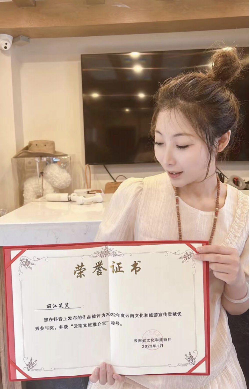 丽江笑笑获得“云南文旅推荐官”称号 。 (受访者供图)