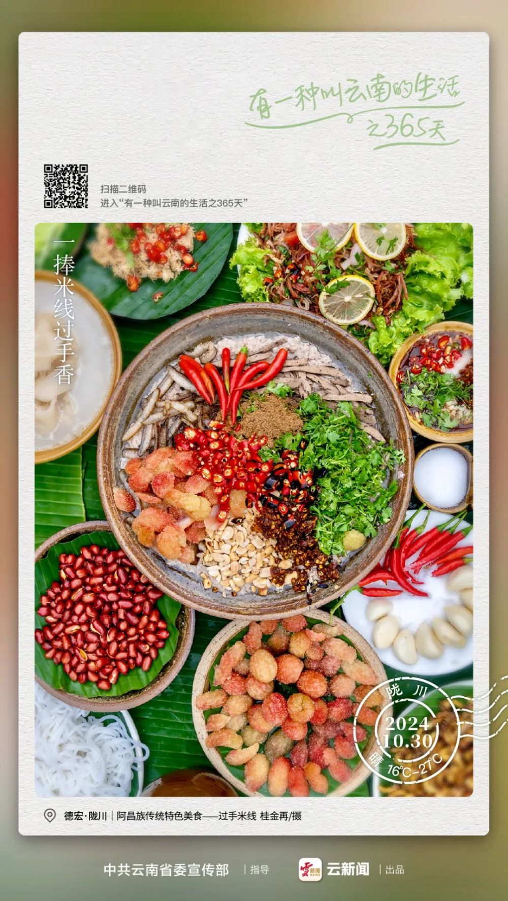 米线还能以“手”为“碗”品尝?没错,这种独特的吃法源自云南省德宏傣族景颇族自治州陇川县阿昌族的特色美食——过手米线。
