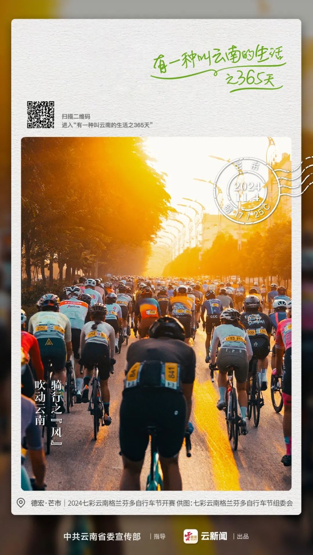 骑行之“风”,是环保的风。骑行不仅能减少碳排放,还能让人更加贴近自然,珍惜每一片绿地和每一口新鲜空气。 骑行之“风”,吹动云南,也吹动每一颗热爱生活、热爱自由的心灵。