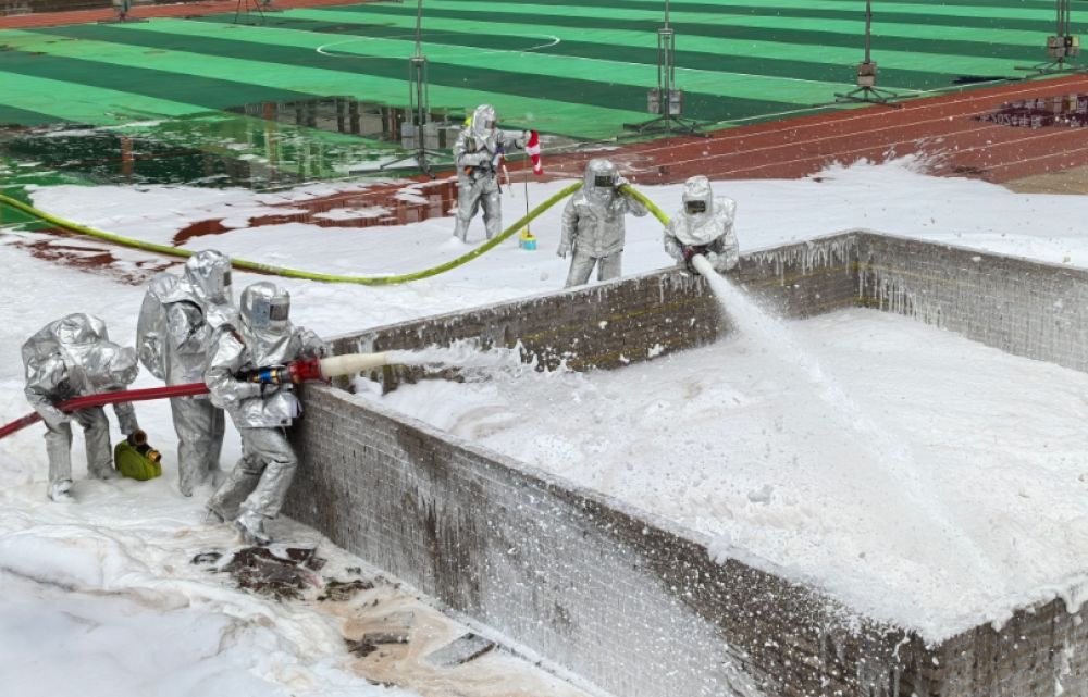 危化品火灾灭火操法的比赛现场。 (丽江融媒记者 木雯娇 摄)