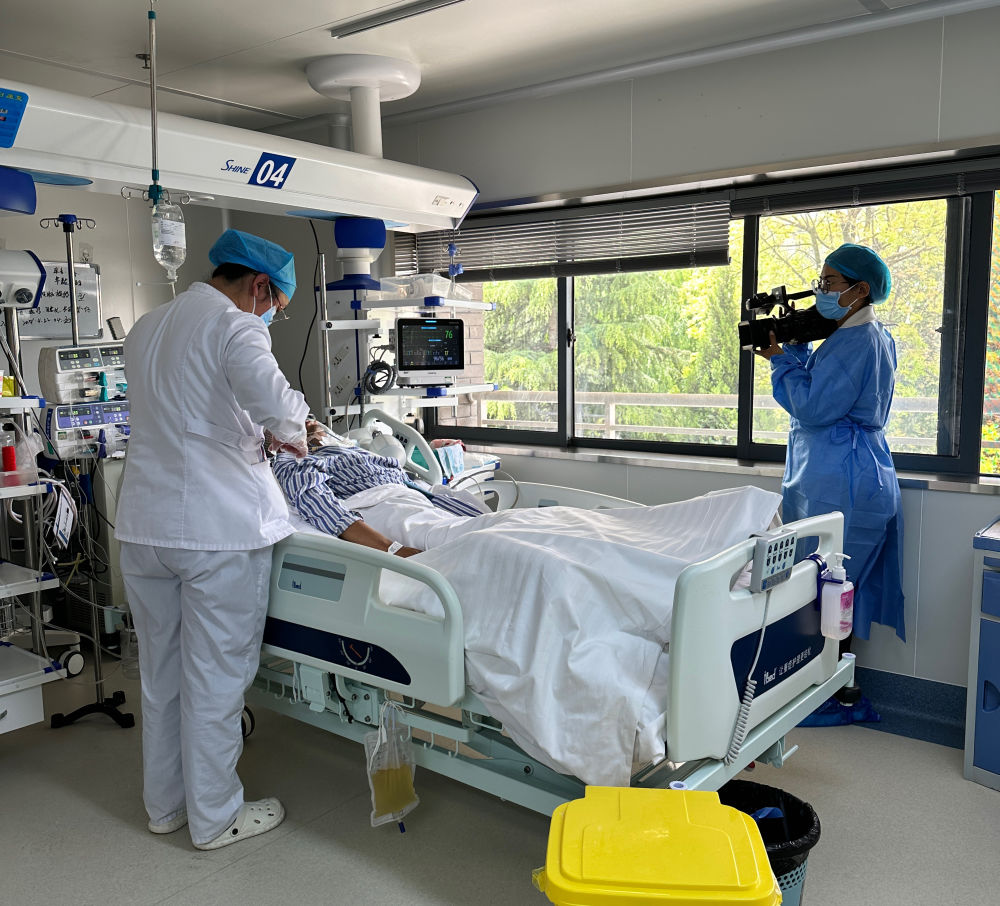 2024年8月,丽江市融媒体中心记者和宝其在拍摄丽江市人民医院神经外科监护室护理工作。(受访者供图)