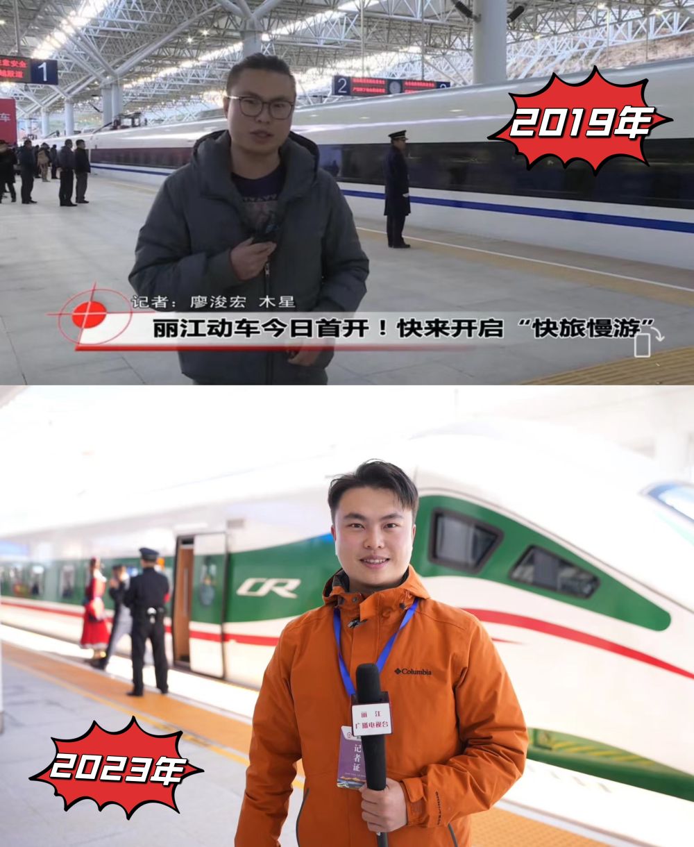从2019年丽江首发动车开行,到2023年丽香铁路开通运营,丽江市融媒体中心记者廖浚宏见证了丽江交通发展的巨变。(受访者供图)