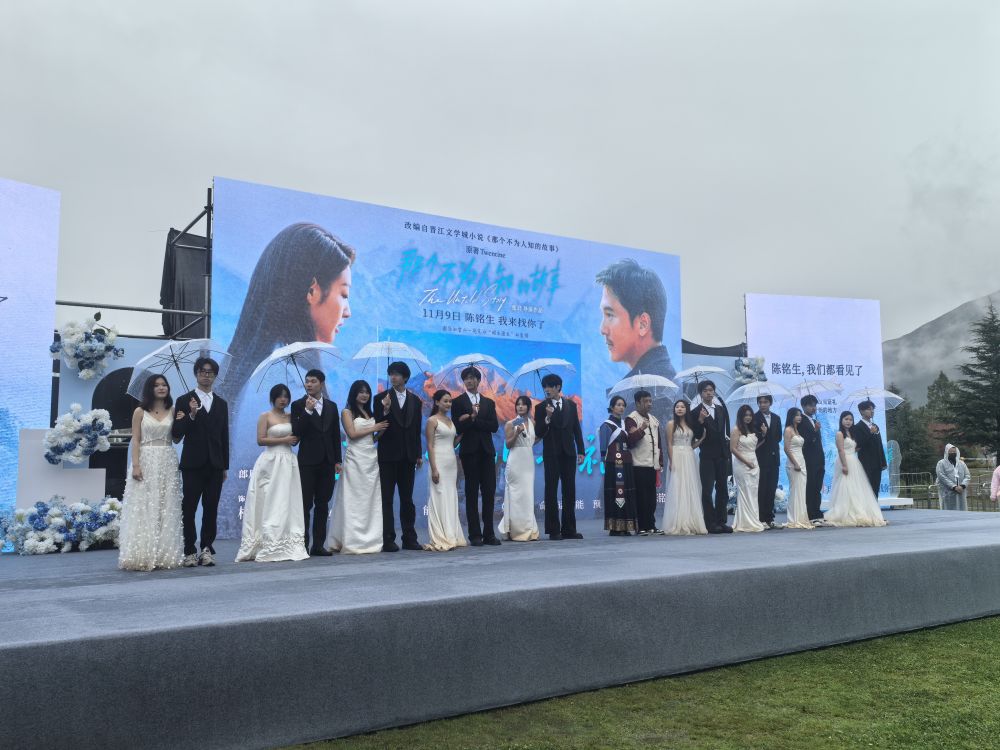 11月7日,电影《那个不为人知的故事》首映式暨玉龙雪山见证礼在东巴谷景区举行,主创团队与一百余名观众一起,在玉龙雪山脚下重温这个经典爱情故事。