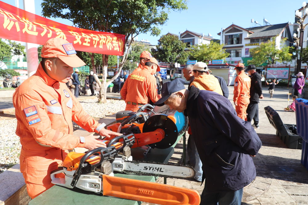 11月9日,玉龙森林消防大队二中队在玉龙县龙祥广场举办“119”防火宣传进社区活动。(供图)