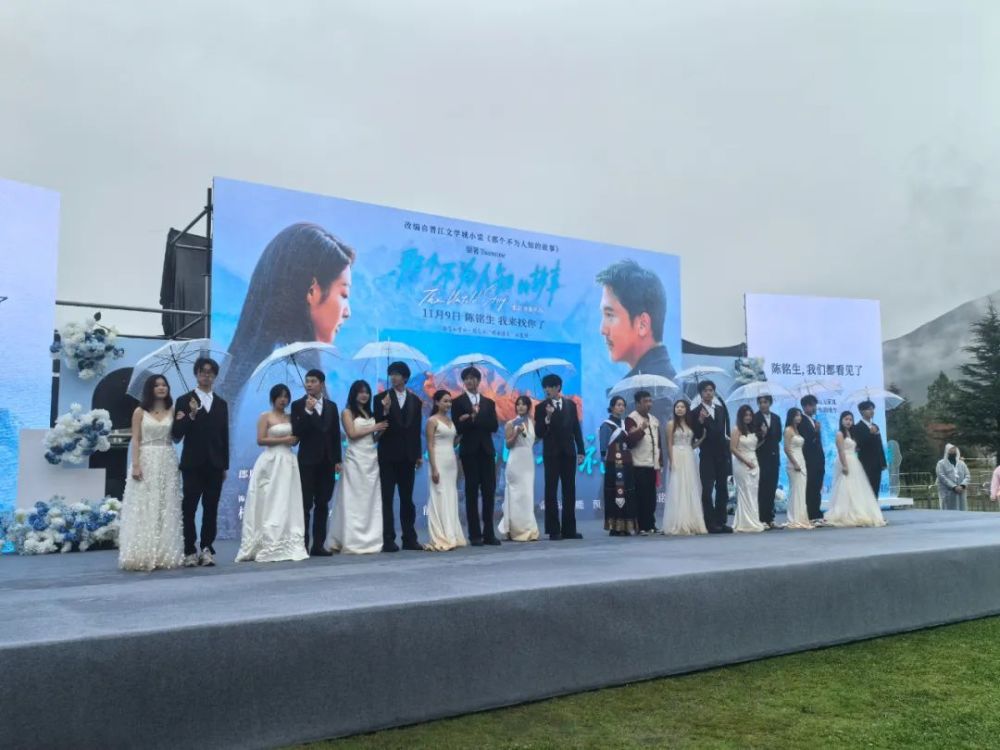 11月7日,电影《那个不为人知的故事》首映式暨玉龙雪山见证礼在东巴谷景区举行,主创团队与100余名观众一起,在玉龙雪山脚下,见证了这个经典爱情故事的开始……