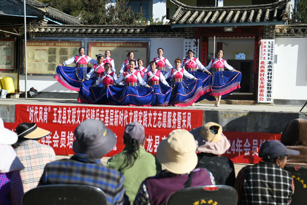11月10日,“时代风尚”玉龙县文联文艺轻骑兵走基层新时代文明实践文艺志愿服务暨采风活动在玉龙县九河乡北高寨村开展。活动让基层群众近距离接触艺术精品佳作,感受艺术魅力,进一步丰富和点亮了群众的精神文化生活。