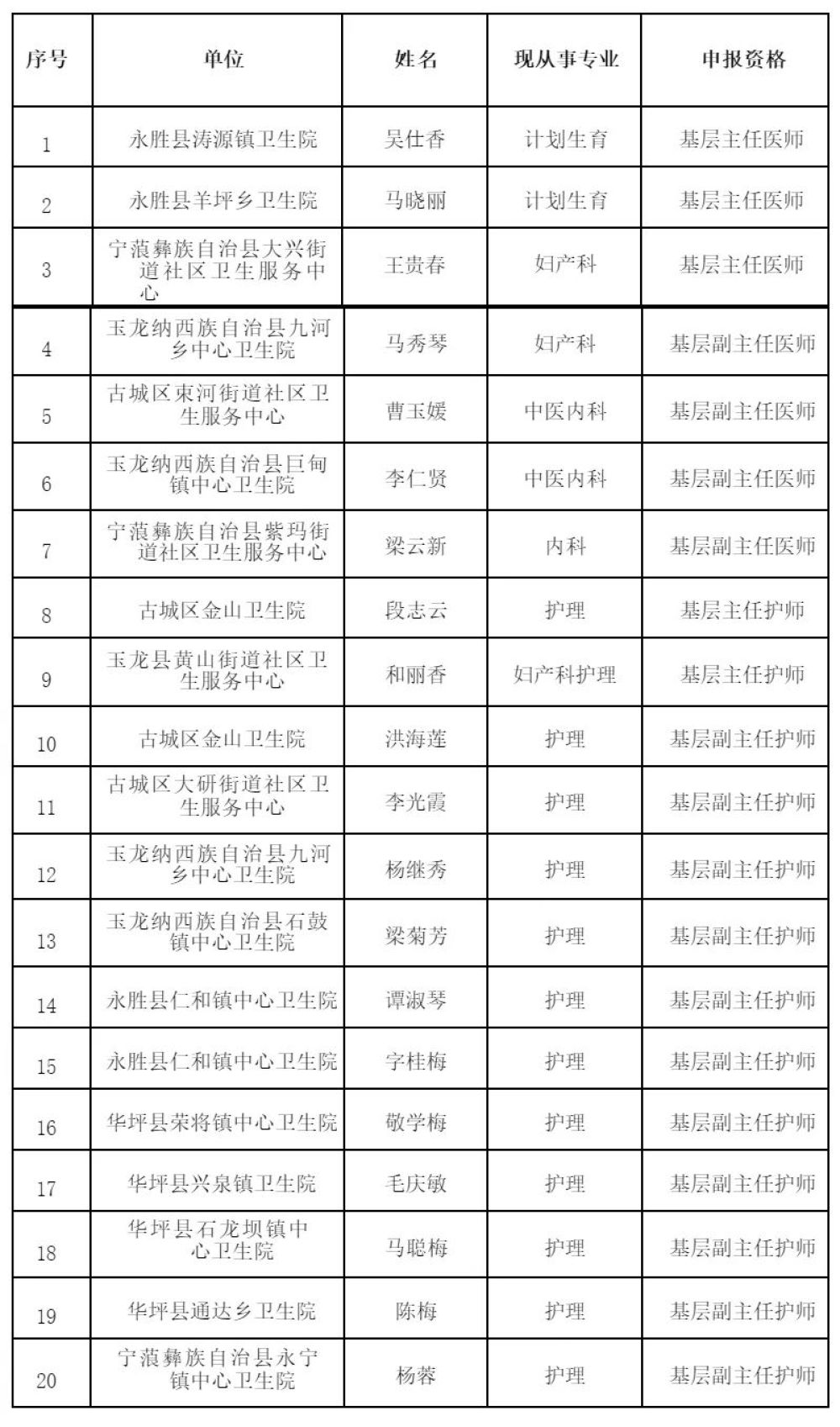 2024年丽江市基层卫生技术系列申报高级专业技术职称名单