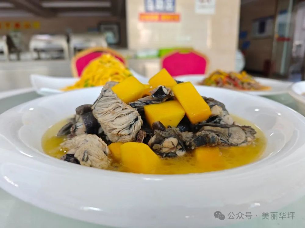 “芒果炖鸡”。这道菜选用华坪当地的土鸡,肉质紧实,搭配熟透的芒果,经过长时间的文火慢炖,鸡肉吸收了芒果的天然果香,变得异常嫩滑且溢着淡淡的酸甜滋味。芒果的加入提供了酸甜基调,与鸡肉的醇厚相融,为原本较为单一的鸡肉增添了丰富的口感,芒果纤维中的果胶使汤汁更加浓稠,增加了菜品的质感。