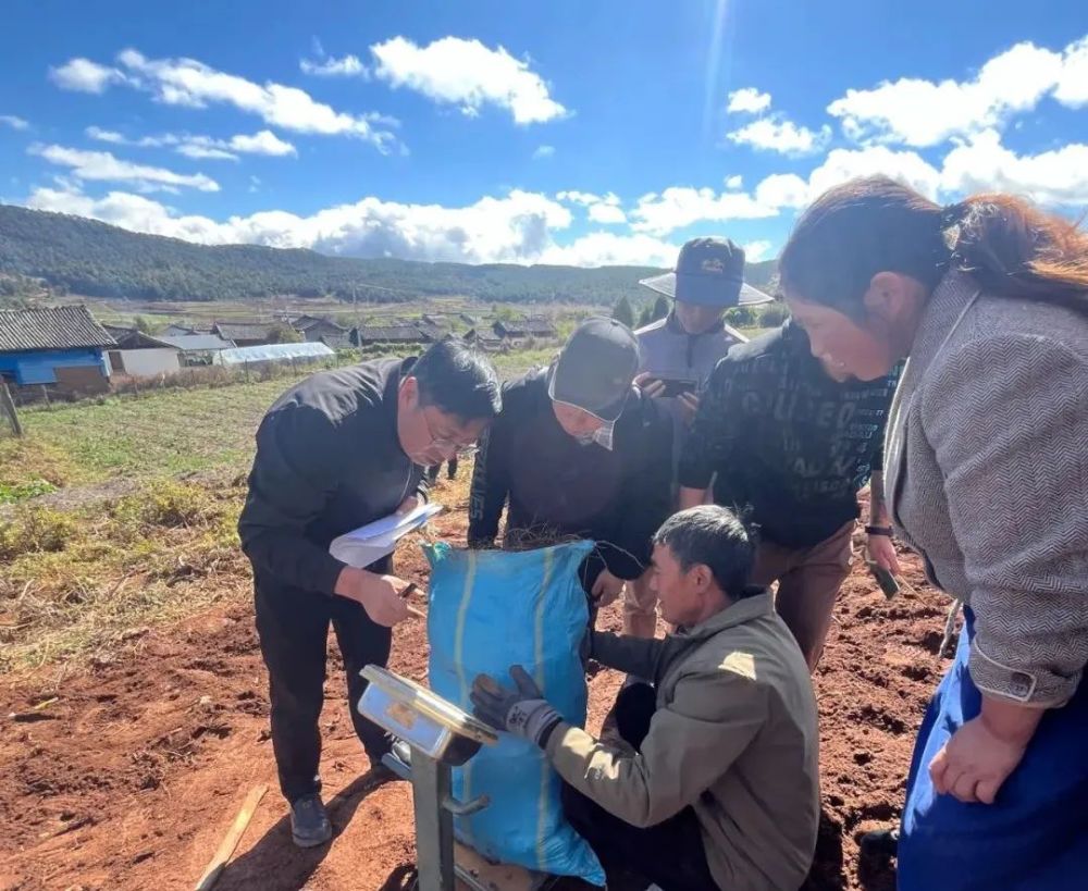 11月10日,在黄山街道南溪社区,专家组正在对云当归进行测产。(丽江融媒记者 和世民 摄)