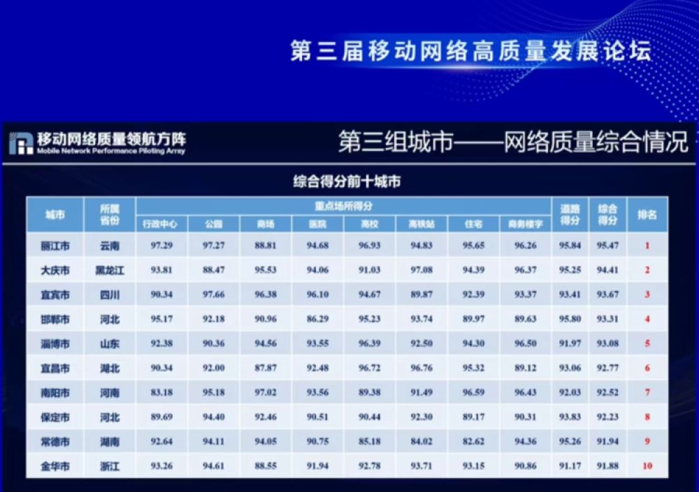在全国百城重点区域移动网络质量专项评测中