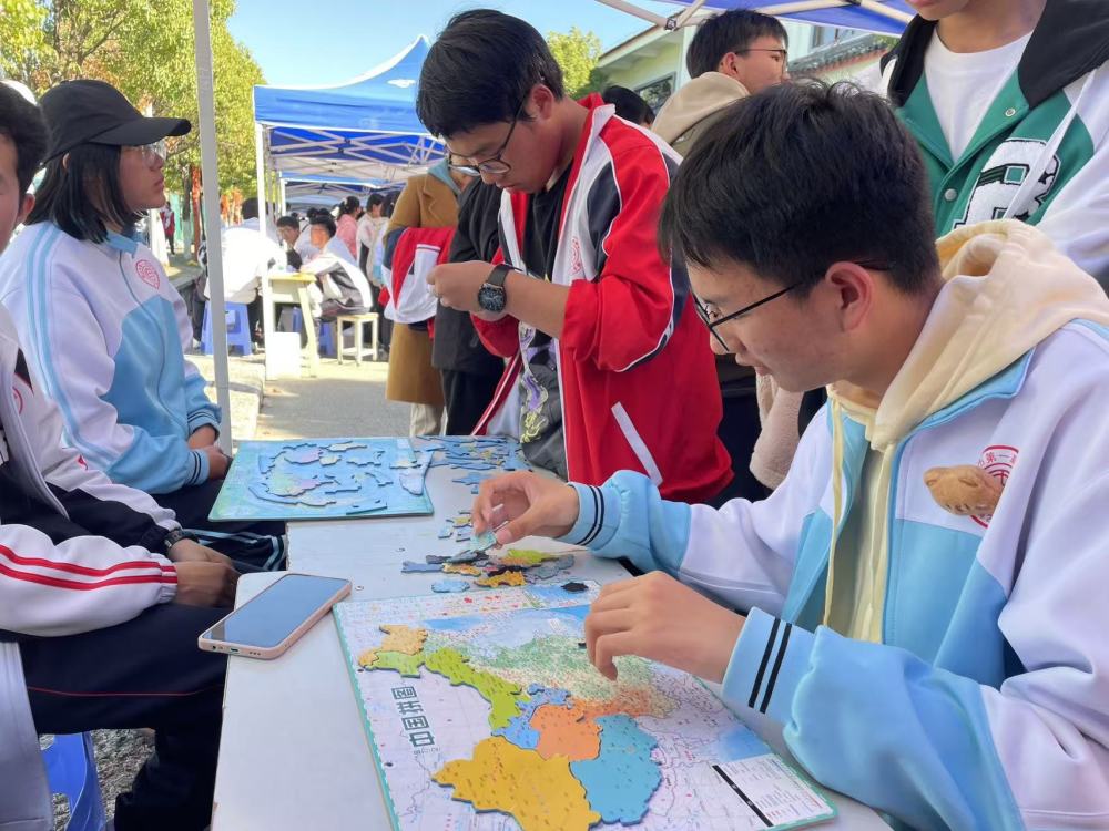 11月15日,同学们在学科文化节中参加地理组趣味活动。(罗蓉 摄)