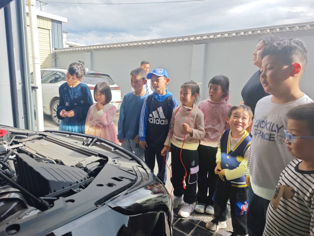 ▲融媒小记者学习汽修知识 (左林珏 摄)