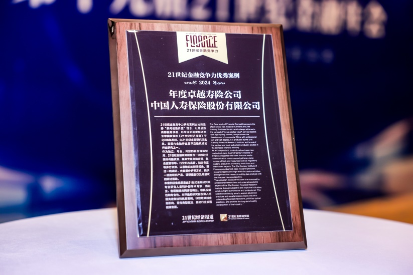 中国人寿保险股份有限公司“年度卓越寿险公司”奖项。(供图)