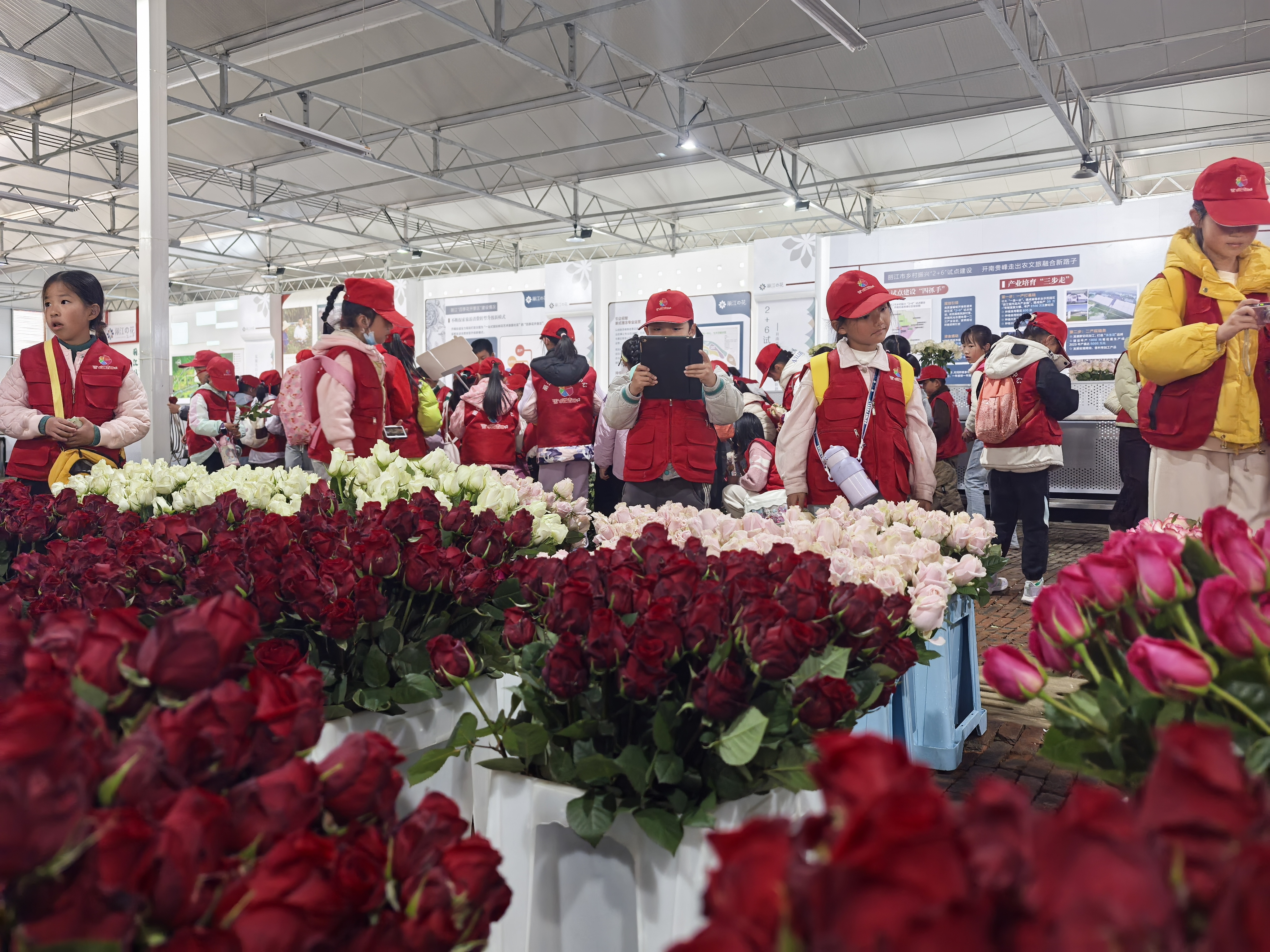 11月23日,小记者团团员参观丽江现代花卉产业园。(丽江融媒记者 侯玮 摄)