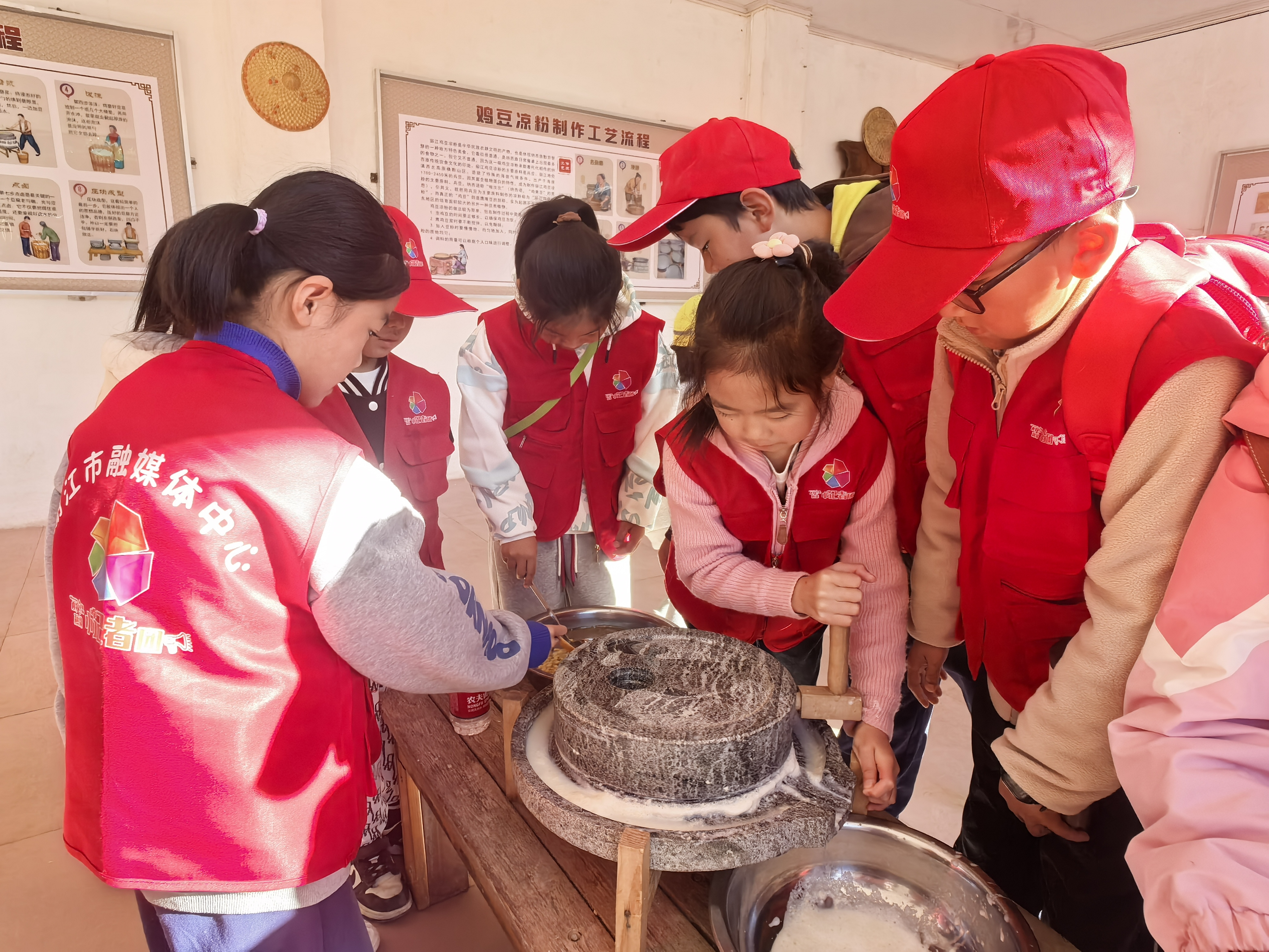 11月23日,小记者团团员体验石磨豆浆。(丽江融媒记者 侯玮 摄)