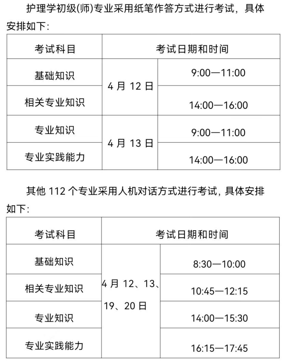 护理学初级(师)专业采用纸笔作答方式进行考试,具体安排如下: