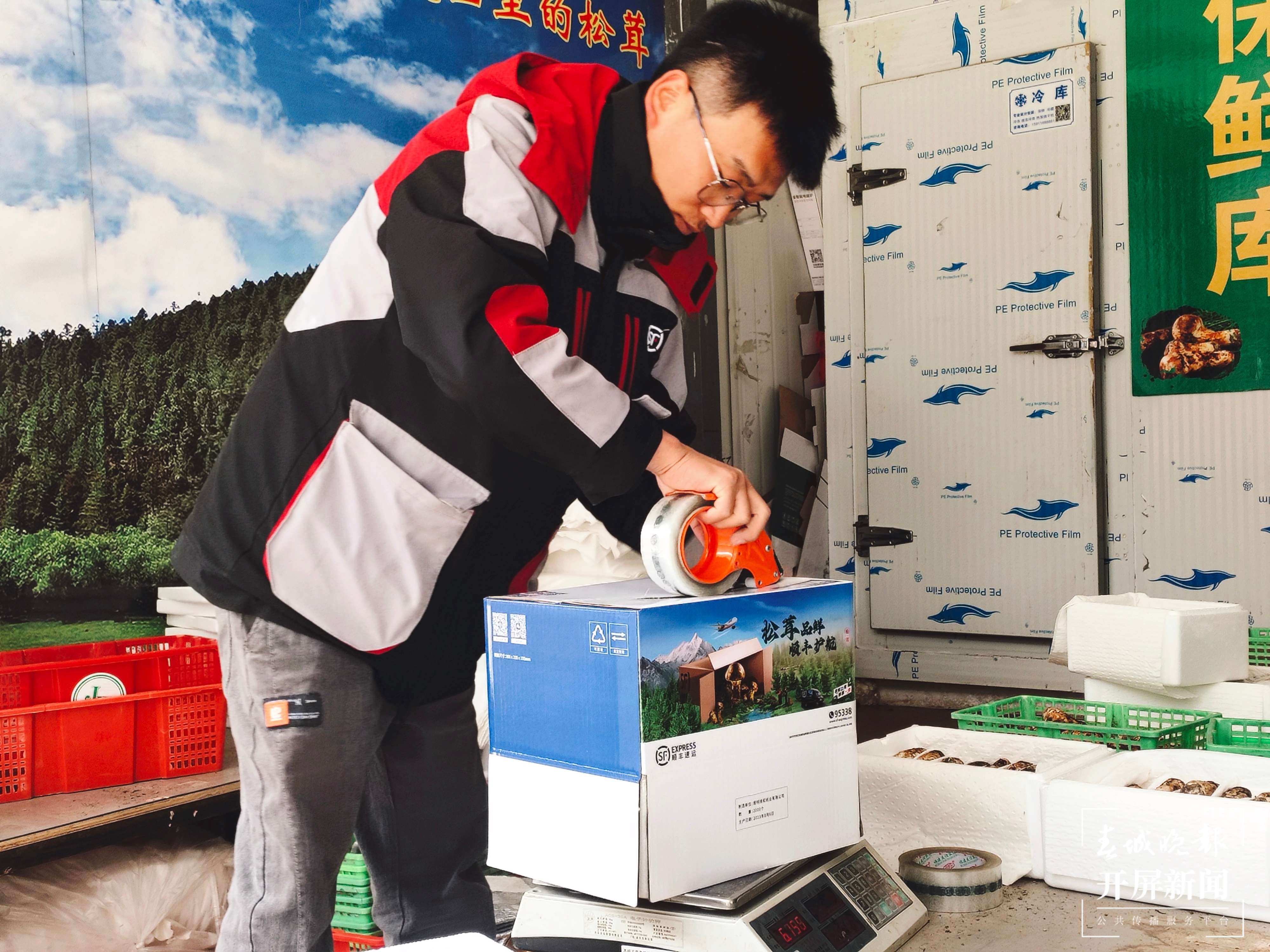 顺丰小哥在揽收松茸