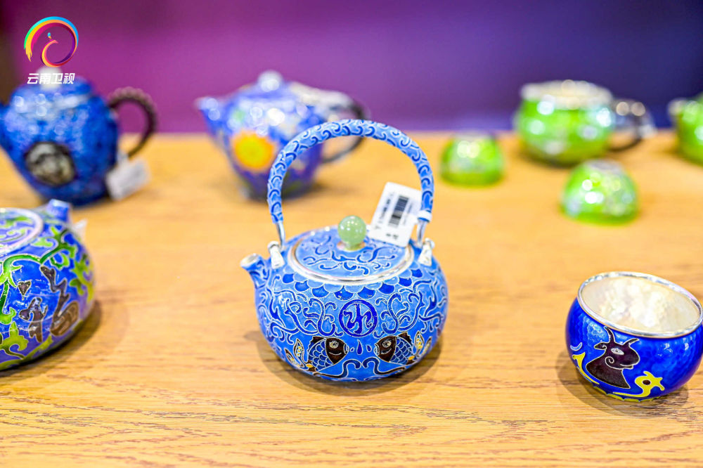 丽江馆内,展示的“云天工”珐琅银器。(供图)
