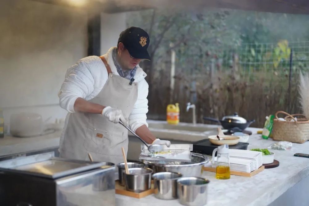 现在,陈志业的日常就是早起拍日照金山,围着篝火喝一杯咖啡,给园子里的花花草草浇浇水、施施肥。然后迎接每天的客人,给他们拍下美美的照片。有兴致的时候,他还会亲自掌勺,做广东肠粉给客人。
