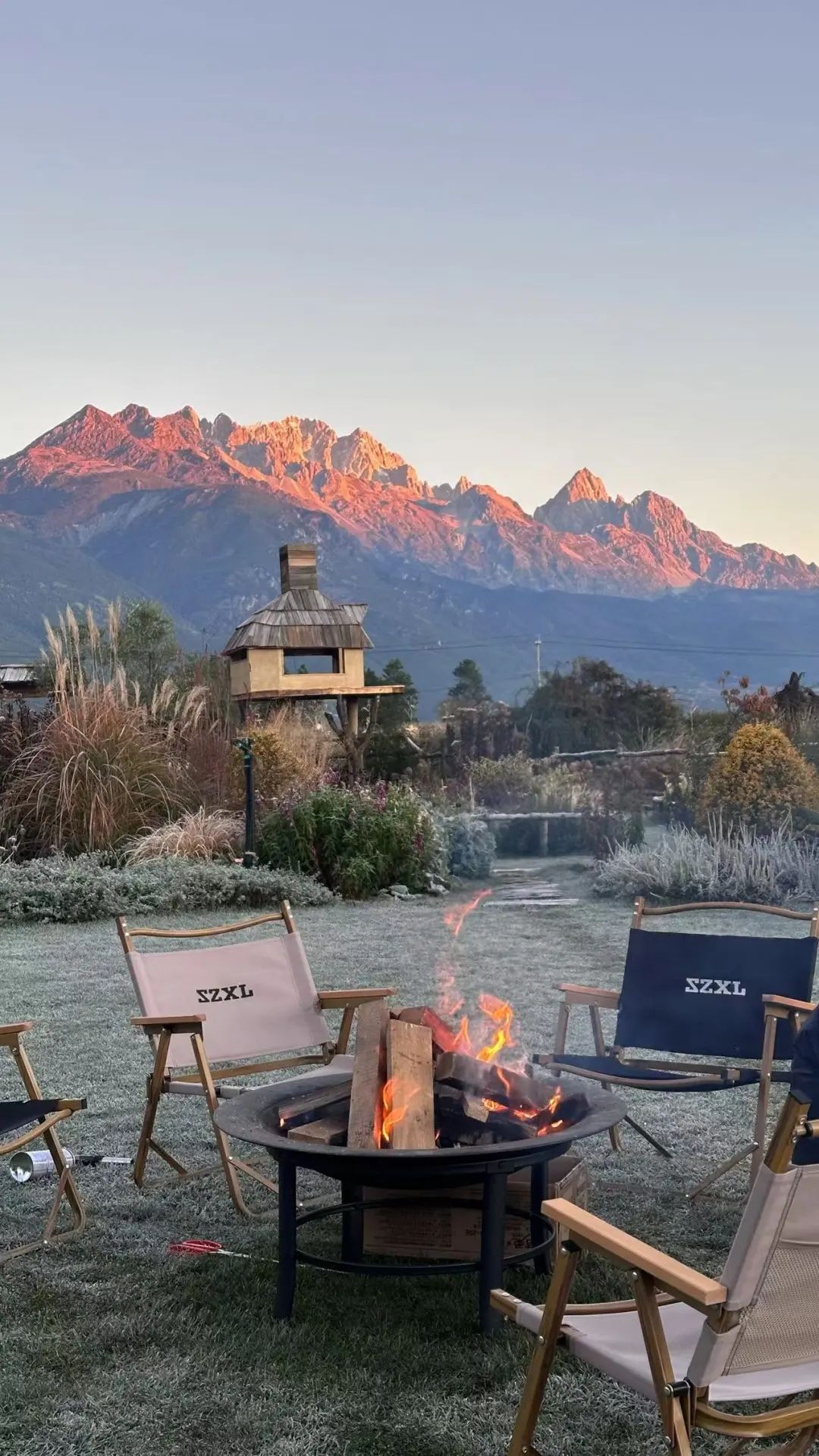 自从今年秋天他在白沙古镇旁边的村子里租下一片地,打造成一家花园咖啡后,他每天最喜欢的事,就是早早起来拍下绝美的日照金山,感受着阳光从雪山之巅一寸寸散落。