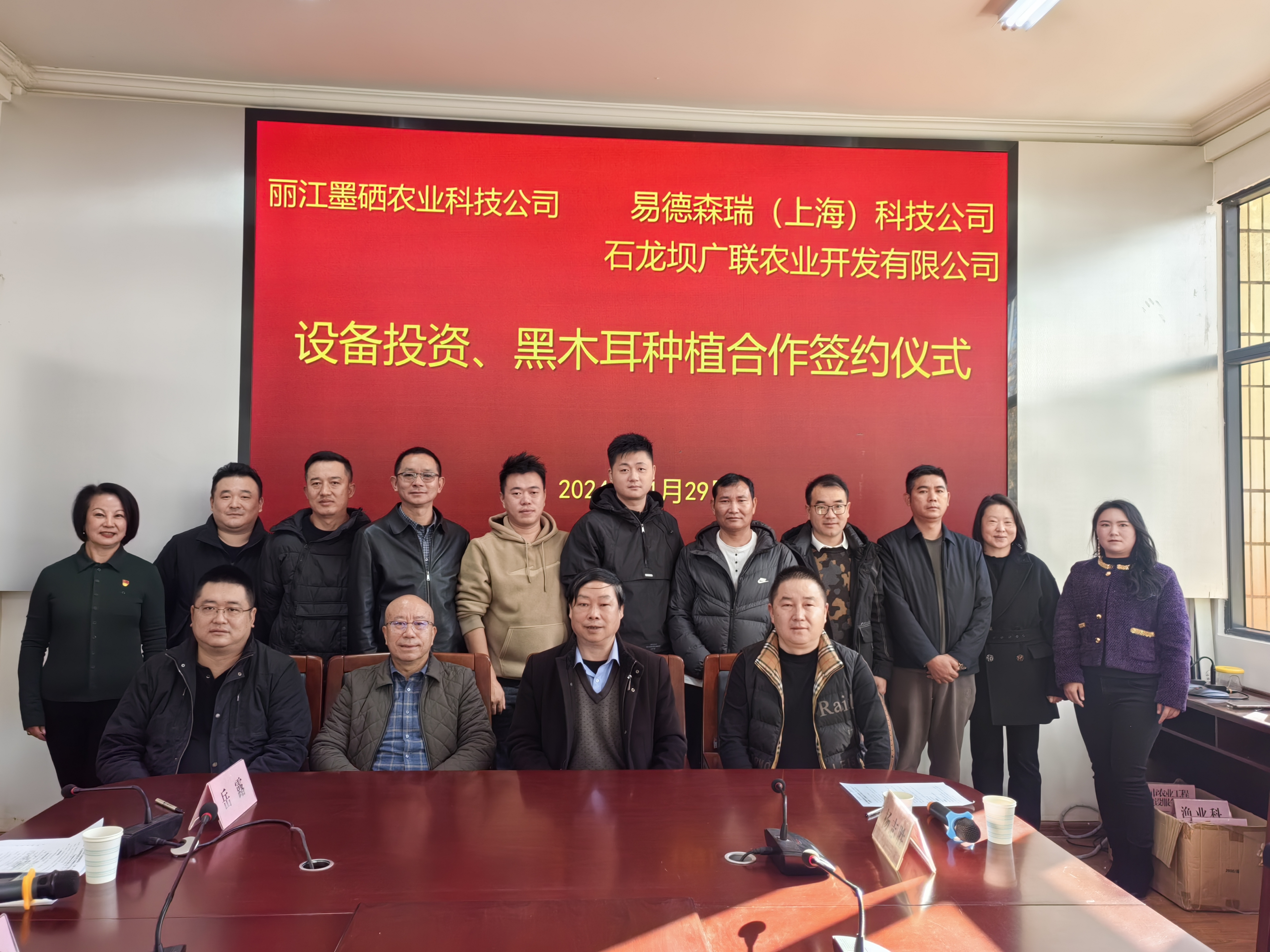 11月29日,丽江墨硒农业科技公司设备投资、黑木耳种植合作签约仪式在市农业农村局举行。