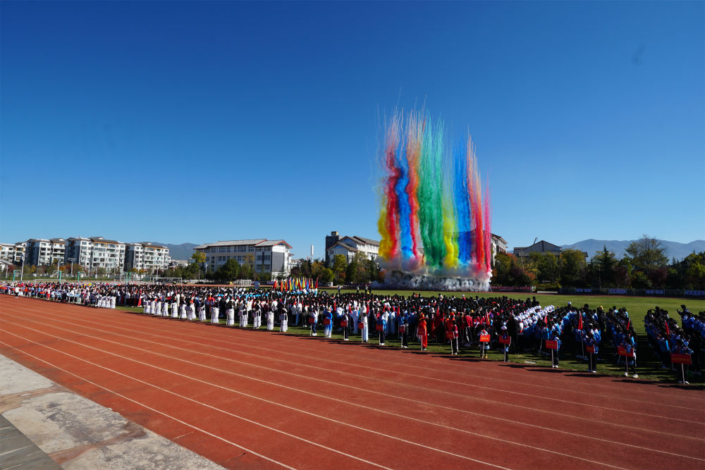 11月29日上午,随着一朵绚丽的“七彩祥云”腾空而起,飘向湛蓝天空,丽江市古城区祥和学校第11届冬季运动会正式开幕。