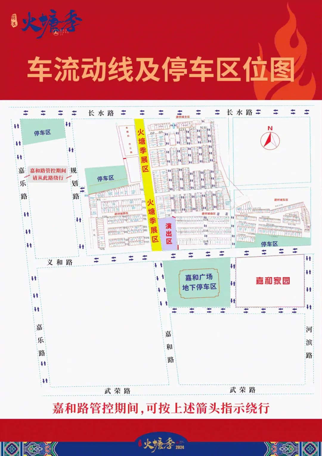 为深入贯彻《丽江市文化和旅游宣传推广一月一活动实施方案》的总体要求,进一步提升丽江火塘餐饮美食的知名度和美誉度,丽江市人民政府决定组织开展“舍不得的丽江美食”——2024年丽江火塘季活动,为了保障活动期间周边道路畅通、平安、有序,将对嘉和路部分路段采取限制通行措施。现将有关事宜通告如下:上述管制路段管制期间通行车辆可由嘉乐路、武荣路、义和路、嘉和路嘉和家居馆西路段绕行。交通管制期间,请所有车辆和行人注意现场设置的警示标识标牌并按规定通行,自觉服从现场指挥人员指挥疏导。