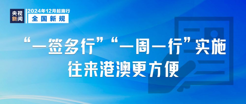 12月1日起,广东深圳市户籍居民和居住证持有人可以申请办理赴香港旅游“一签多行”签注,在1年内可不限次数往来香港地区,每次在香港逗留不超过7天。