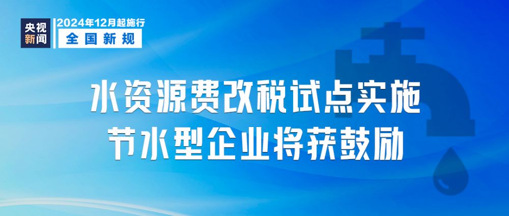 12月1日起,全国全面实施水资源费改税试点。其中规定,工业用水前一年度用水效率达到国家用水定额先进值的纳税人,减征本年度20%水资源税。