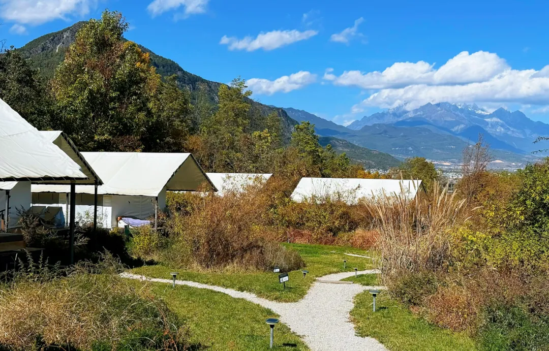星托邦营地位于丽江文笔山的怀抱中,面朝雪山,自然环境得天独厚。其中,帐篷区域,虽然对外叫星座帐篷,但对很多游客来说,这里更像是大自然里的家。在这里,客人能真正地与自然融为一体,感受到大自然的宁静与美好。在这样的环境里,人心很容易沉静下来,为游客提供了一个远离喧嚣、放松身心的理想之地。
