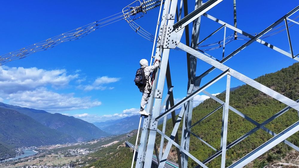 作业现场,丽江供电局输电管理所相关负责人对温度、湿度、风速进行测试并确认具备工作条件后,两名等电位人员登上铁塔,通过“跨二短三”的方法,进入500千伏强电场。塔顶温度骤降,身下是湍急的金沙江,但作业人员凭借专业技术能力,成功克服操作难度高、技术要求高、作业风险高等困难与挑战,顺利完成带电作业,有力保障了电网主干线路的安全可靠运行。