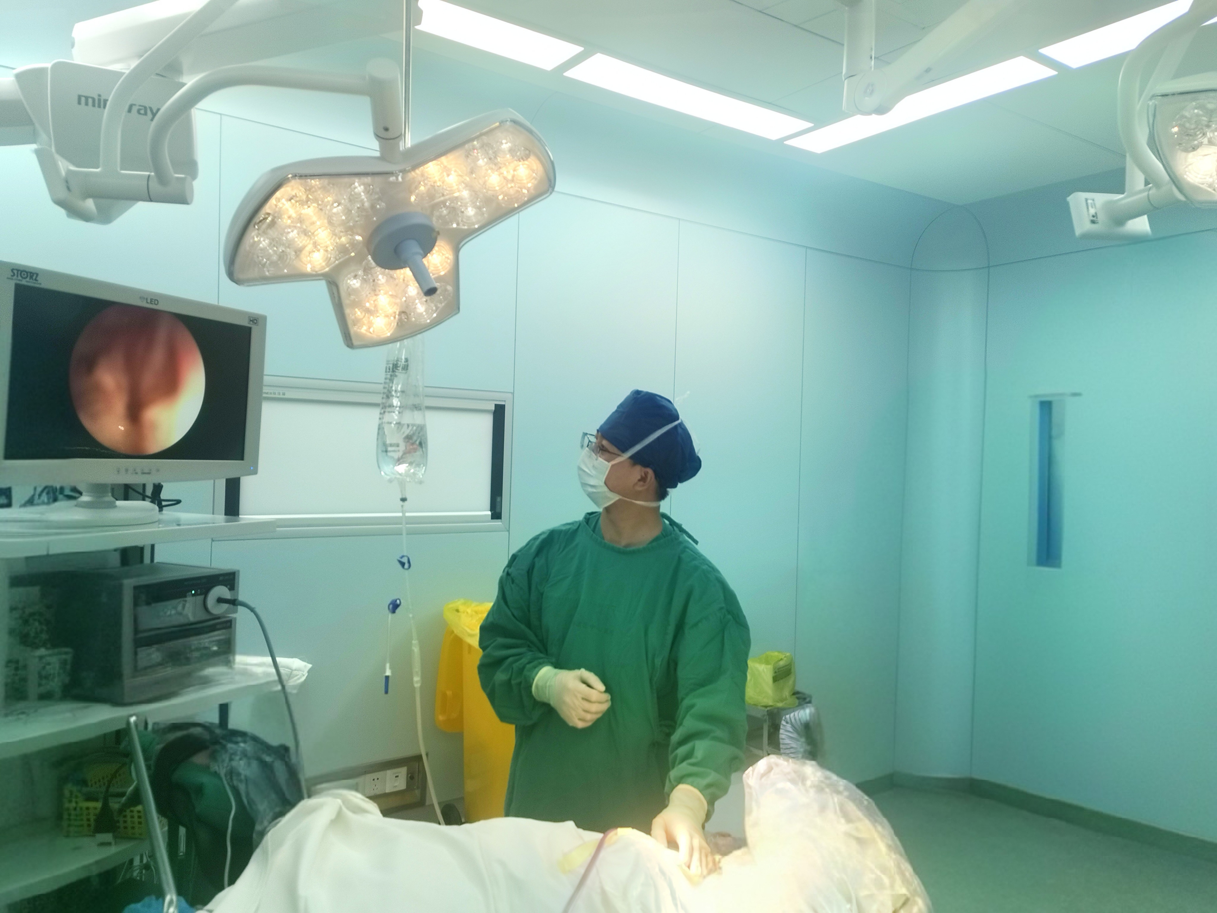 陈相山医生在内镜下为患者实施手术。(古城区医院供图)