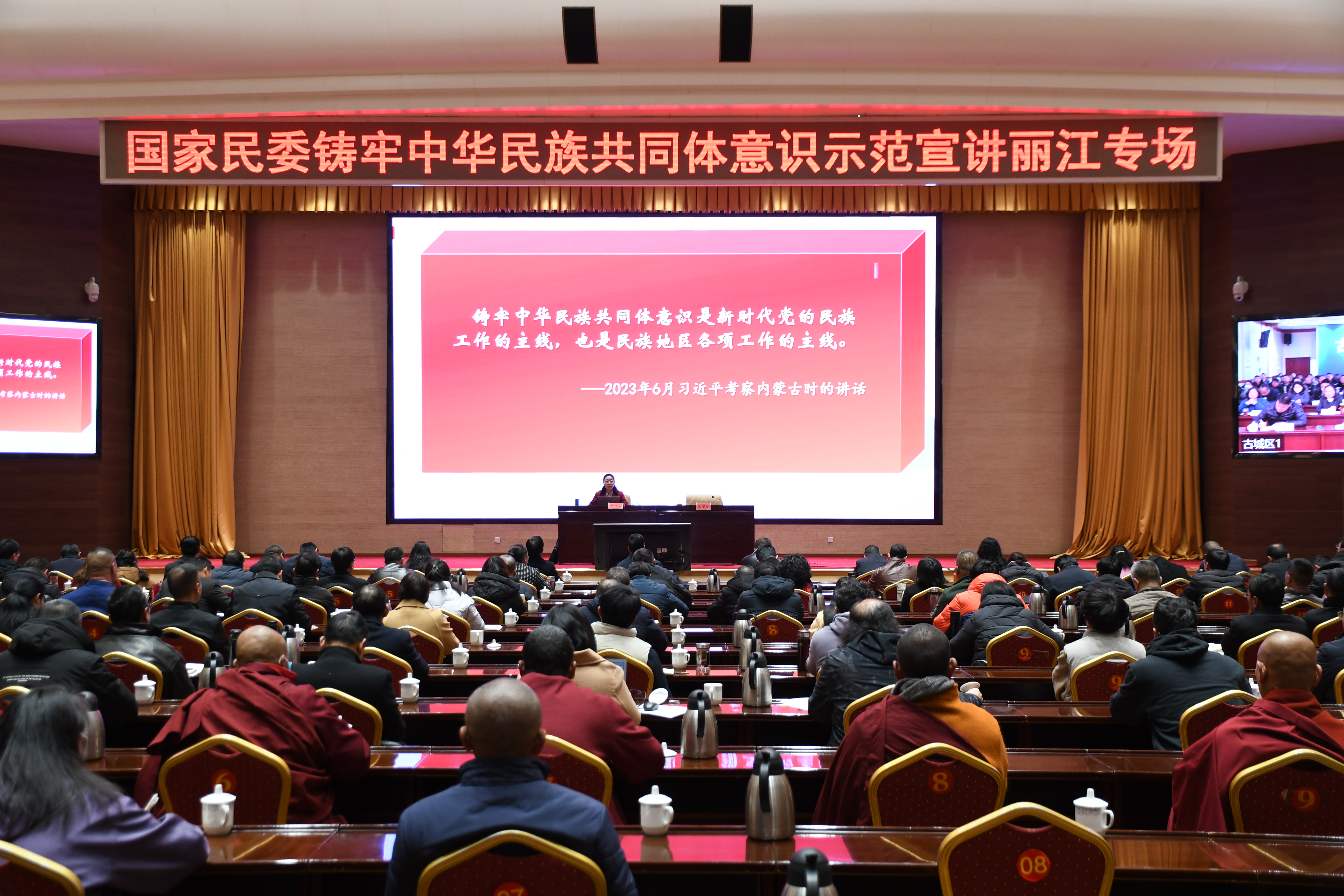 12月12日,国家民委铸牢中华民族共同体意识宣讲团到丽江作示范宣讲。