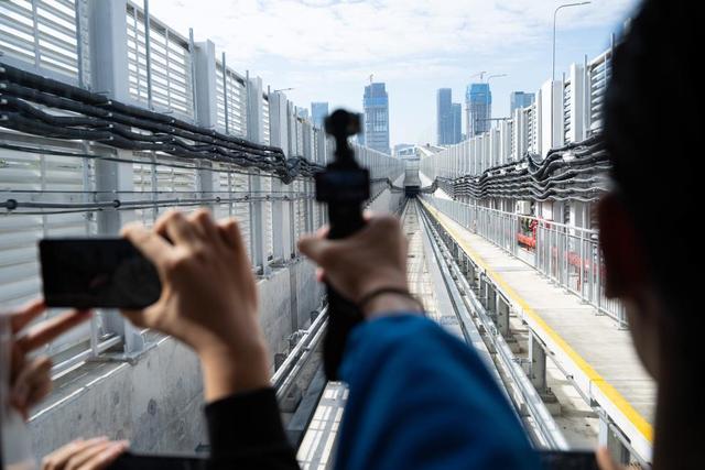 △2024年12月2日,乘客乘坐澳门轻轨首班车前往横琴站。