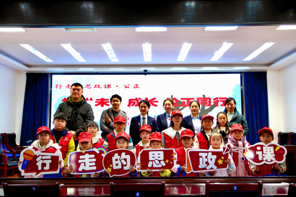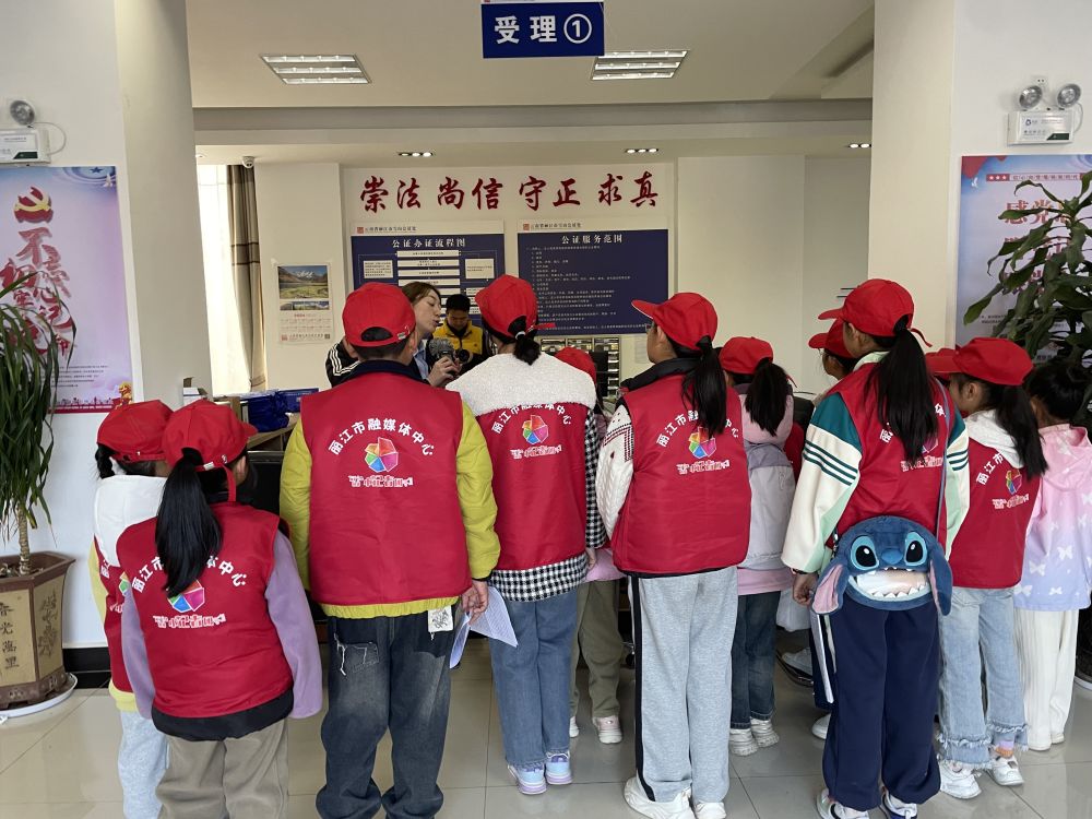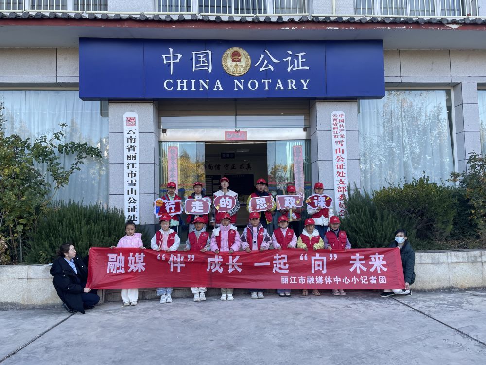 丽江融媒小记者与丽江市雪山公证处完成行走的思政课内容。(赵文立 摄)