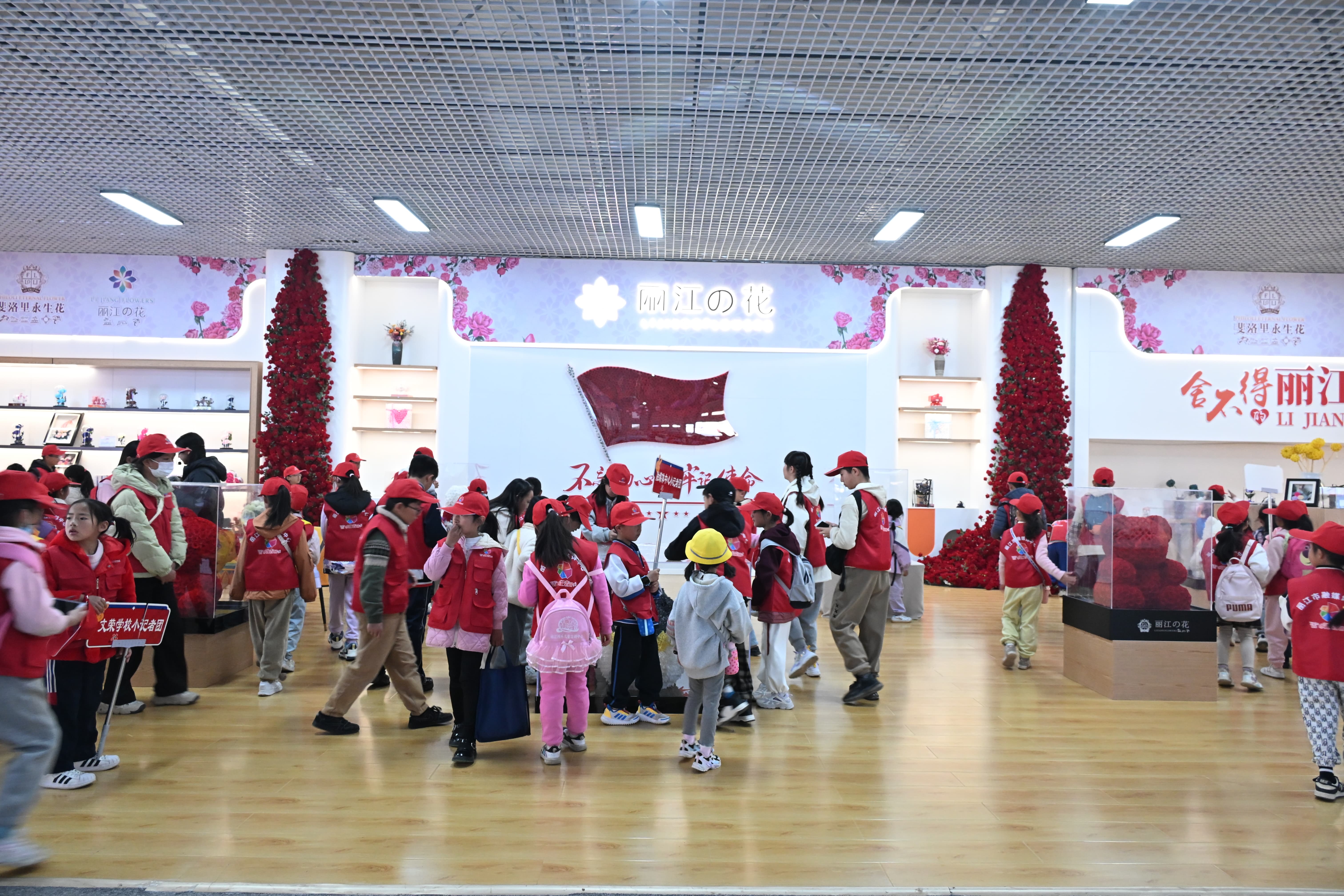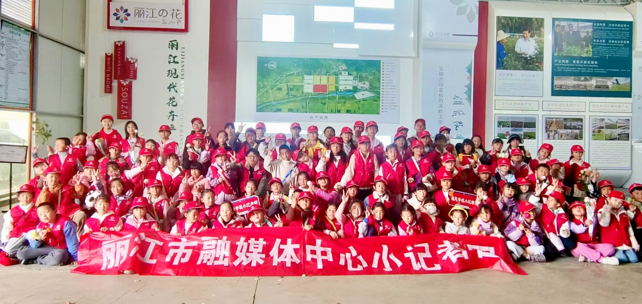 丽江融媒小记者在开南街道贵峰社区现代花卉园区参观学习。(白万朝 摄)