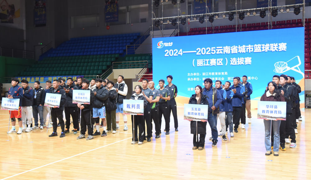 12月20日,2024—2025年云南省城市篮球联赛(丽江赛区)选拔赛举行开赛仪式。(丽江融媒记者 和玉松 摄)