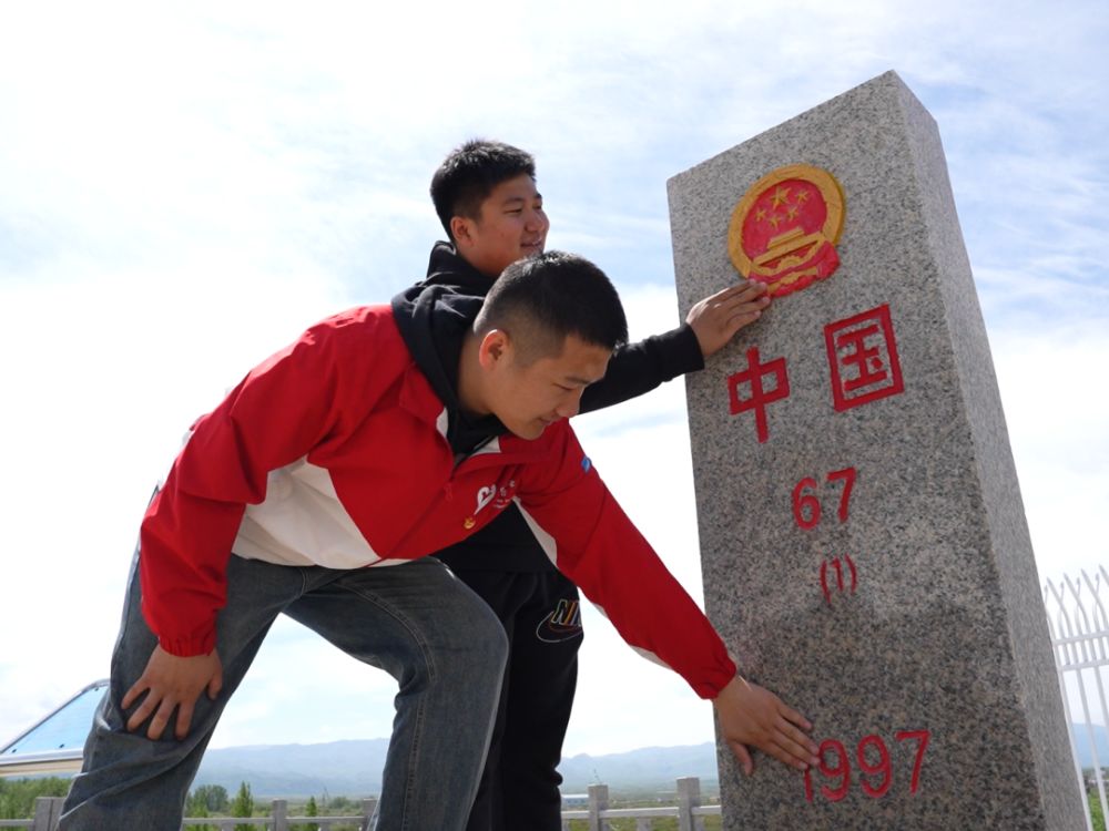 ▲2024年5月,共青团吉木乃县委员会开展“重走长征路”主题活动,两名西部计划志愿者瞻仰中哈67号界碑。(摄影/2023年西部计划志愿者 刘宇)
