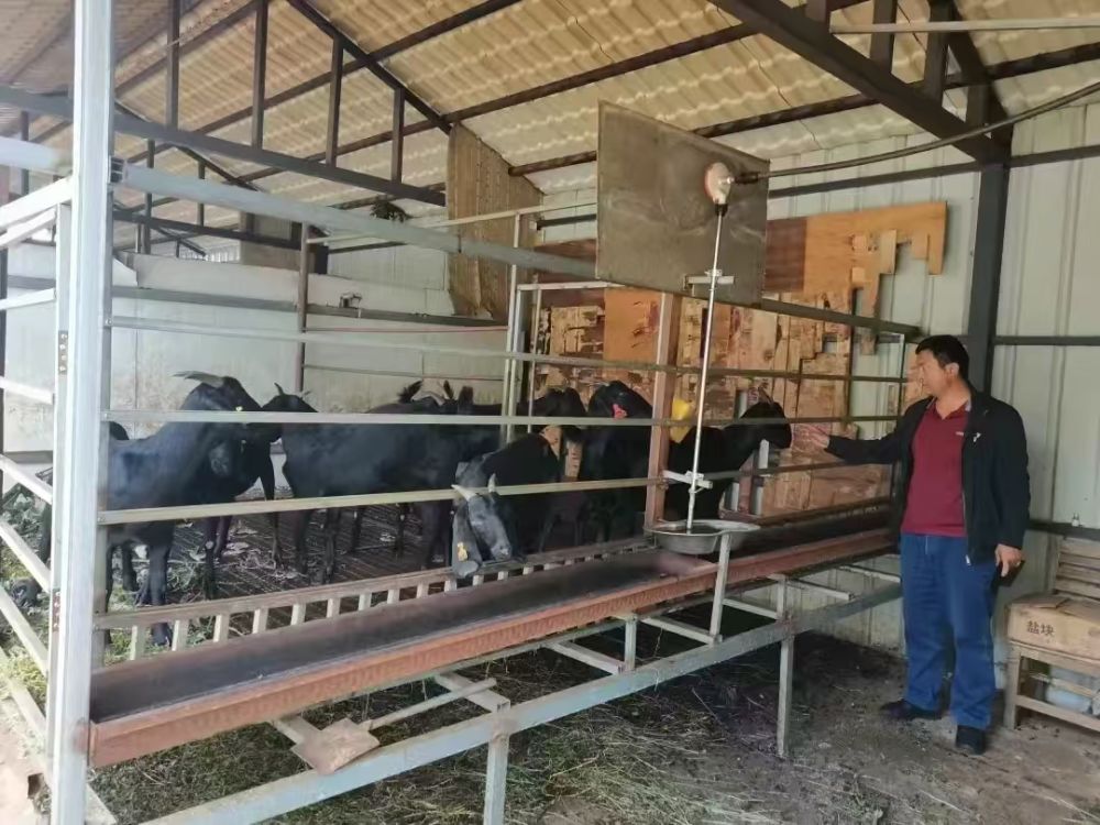10月29日,在金安镇黑山羊养殖户中,农户喂养羊只。(供图)