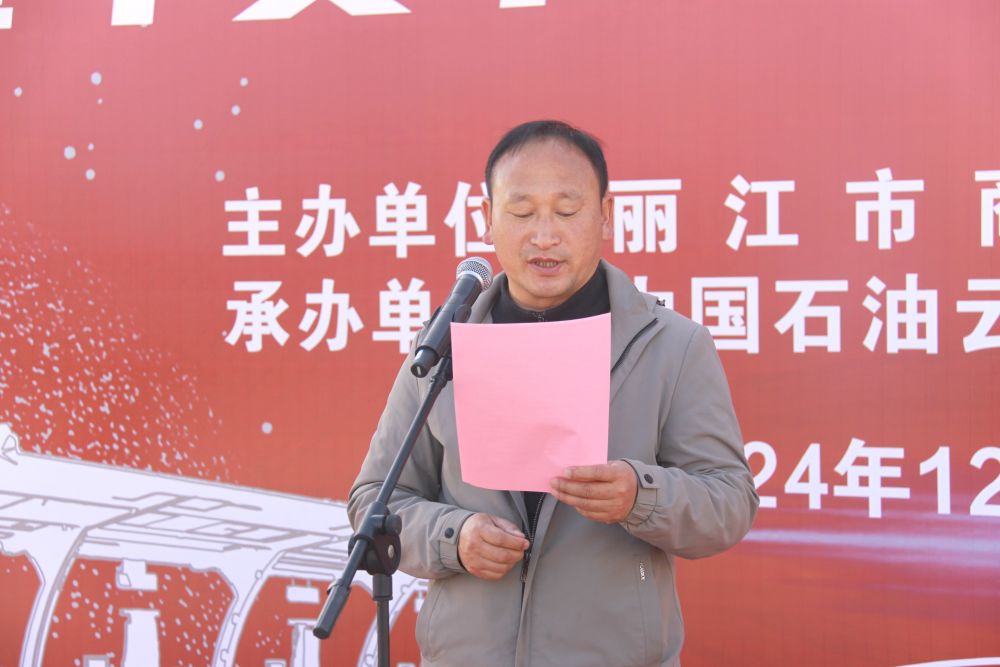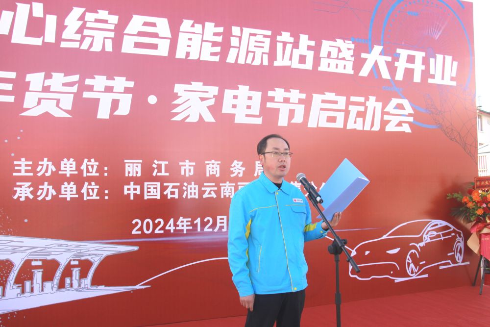12月26日,在玉龙中心综合能源站开业仪式上,中国石油云南丽江销售分公司总经理刘国栋讲话。(苏梦奇 摄)