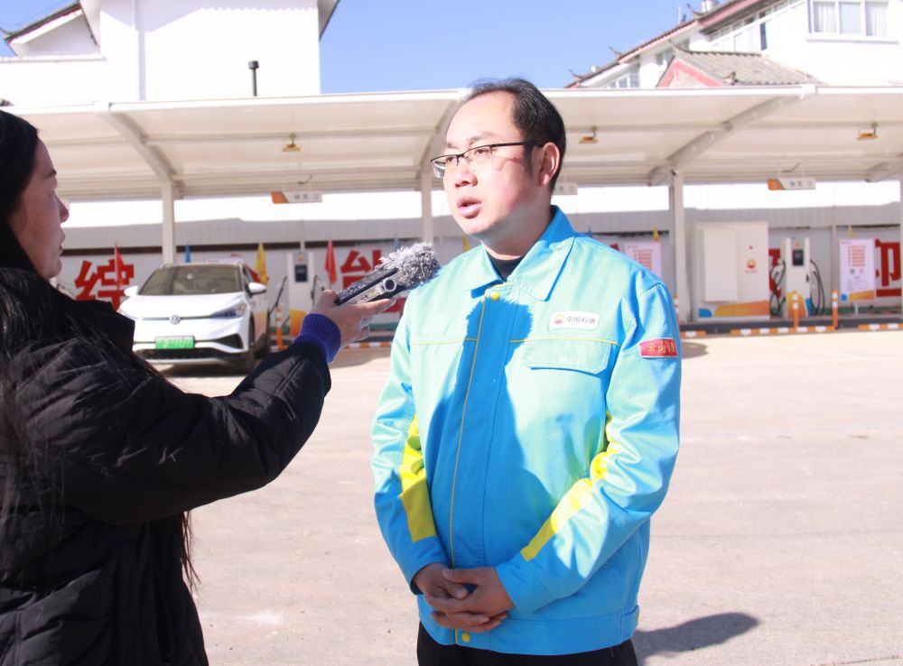 记者现场采访中国石油云南丽江销售分公司经理刘国栋。(苏梦奇 摄)