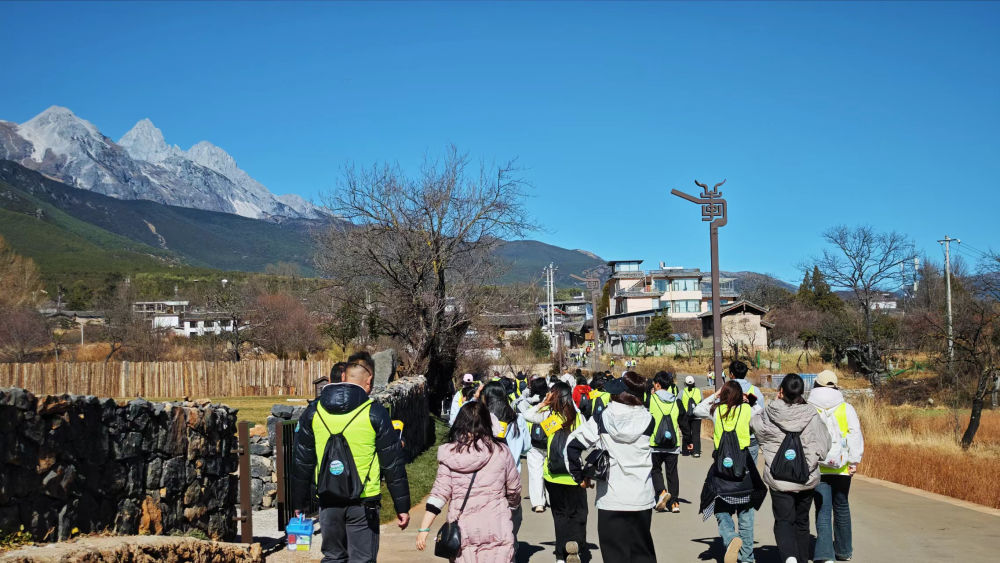 12月29日,百名游客参加“易起趣·丽江快乐行”健康轻徒步活动。(丽江融媒记者 赵晓舟 摄)