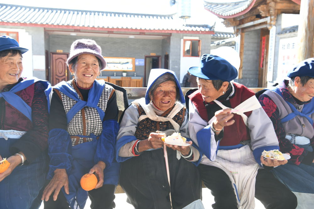 老年人一起吃生日蛋糕。(丽江融媒记者 赵庆祖 摄)