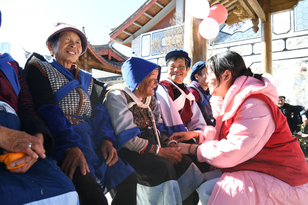 志愿者与老年人聊天。(丽江融媒记者 赵庆祖 摄)
