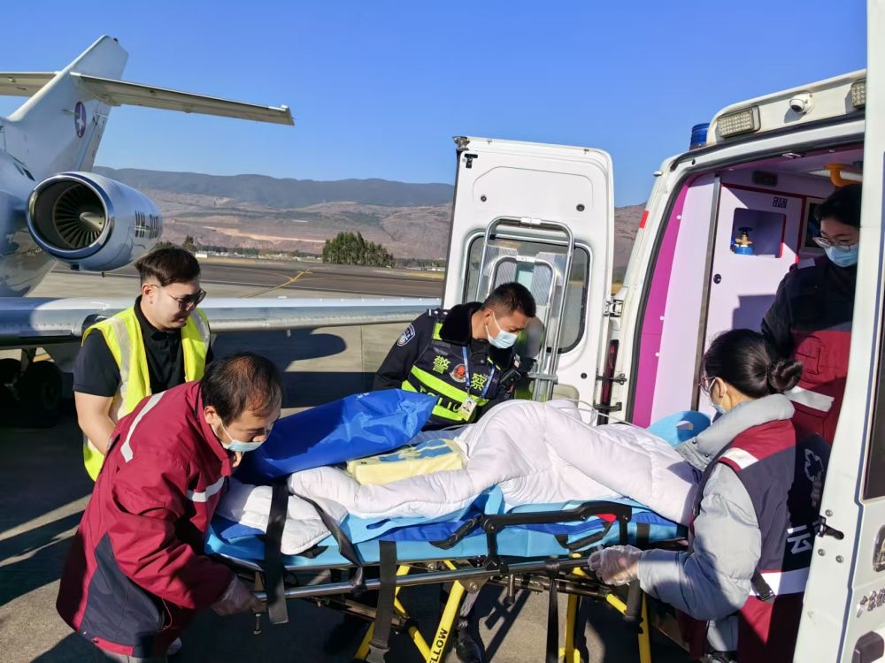 丽江边检站完成丽江至越南急救包机保障任务,助力重症旅客快捷出境、接受紧急救治。(通讯员 李金勇)