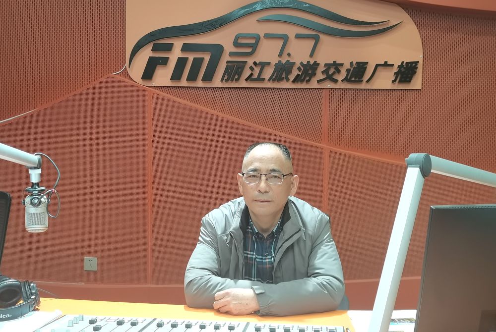 1月21日,丽江东巴万神园景区总经理 姚世伟做客丽江旅游交通广播直播节目。(李婧 摄)
