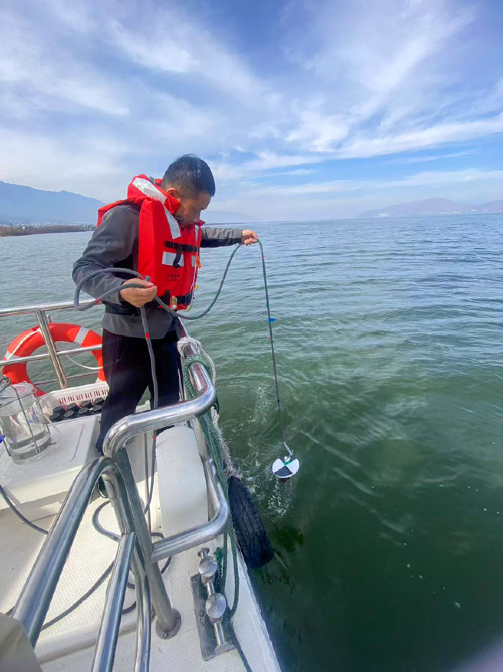 上海交通大学云南(大理)研究院的工作人员正在洱海湖区取水样。受访者供图