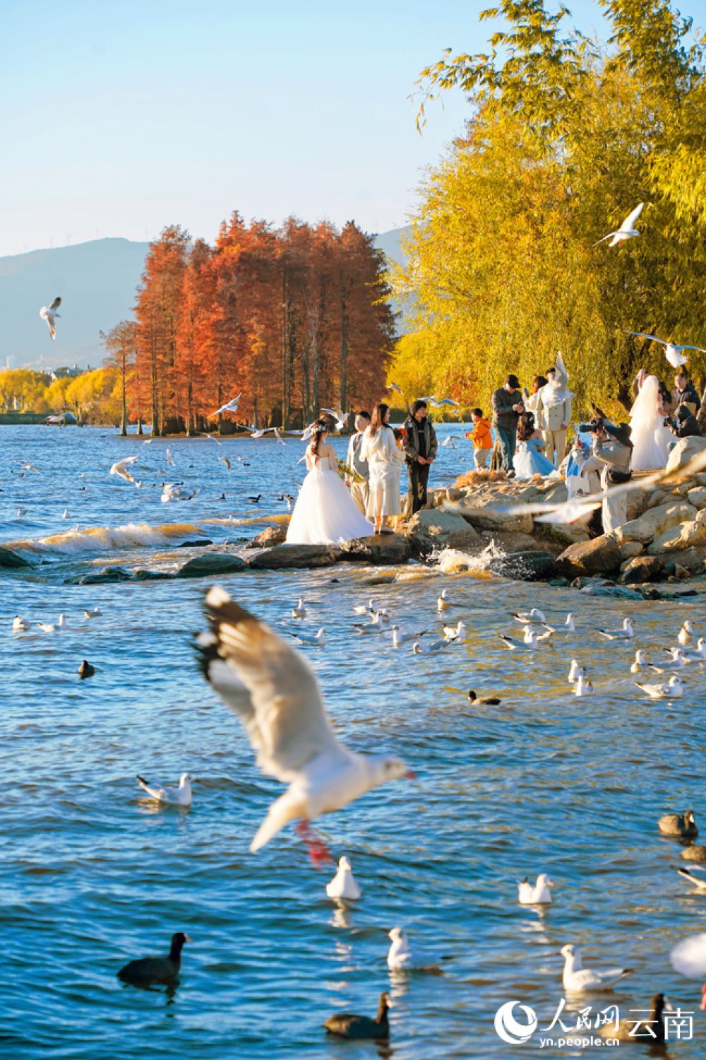 冬日洱海畔,很多新人来此拍婚纱照。马雯摄